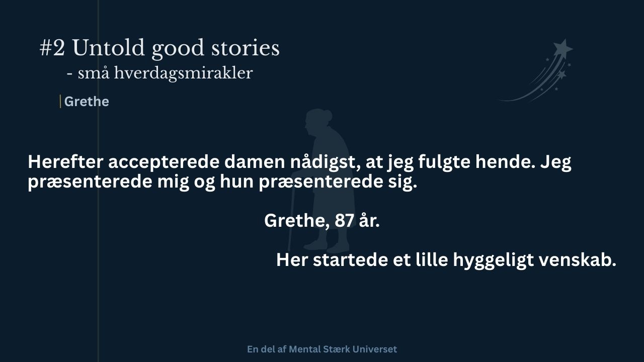 For nu er arbejdstitlen “Untold good stories” (jeg har ikke fundet den præcise danske titel endnu)
